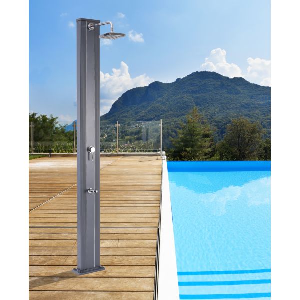 La Ducha Solar es la solución perfecta para disfrutar de agua caliente en espacios exteriores como piscinas, jardines o terrazas, sin necesidad de electricidad. Gracias a su sistema de calentamiento por energía solar, proporciona una opción ecológica y eficiente, ayudando a reducir el consumo energético.
