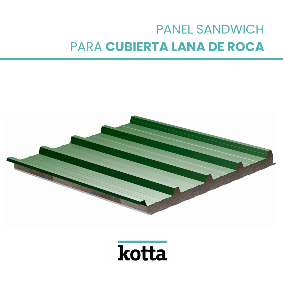 Panel sandwich de cubierta con núcleo aislante de lana de roca compuesto con dos chapas de acero. La chapa metálica exterior está perfilada con 5 grecas, lo cual permite aumentar la resistencia a las cargas estáticas y dinámicas. Su principal aplicación es en cubiertas cortafuegos en edificios industriales o edificación civil que requieren elevadas prestaciones de resistencia al fuego y fonoaislantes. El panel sandwich de lana de roca reúne varias ventajas en un único material, entre las que se destacan el aislamiento térmico, el aislamiento acústico y la seguridad contra incendios.